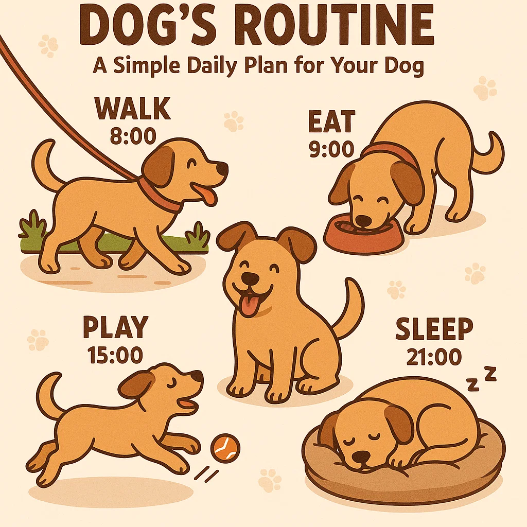 Dogs are our best friends, and they depend on us for care and love. Just like people, dogs feel happy and safe when they have a daily routine. A fixed routine helps them eat, sleep, and play at the right time. It also keeps them healthy, active, and well behaved.